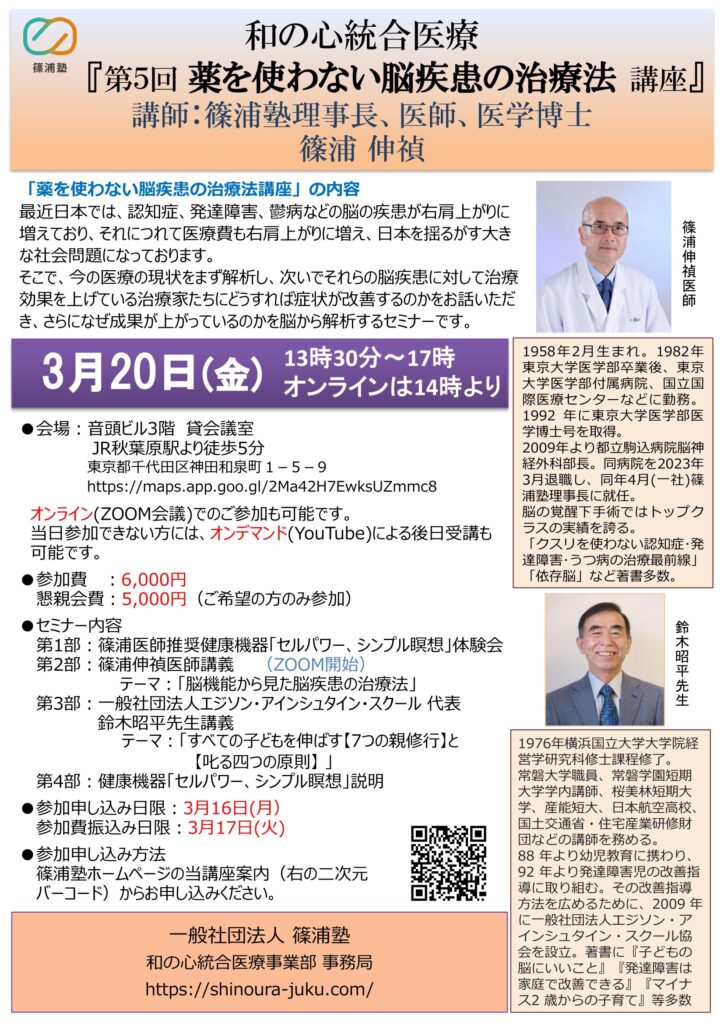 第5回薬を使わない脳疾患の治療法講座のご案内